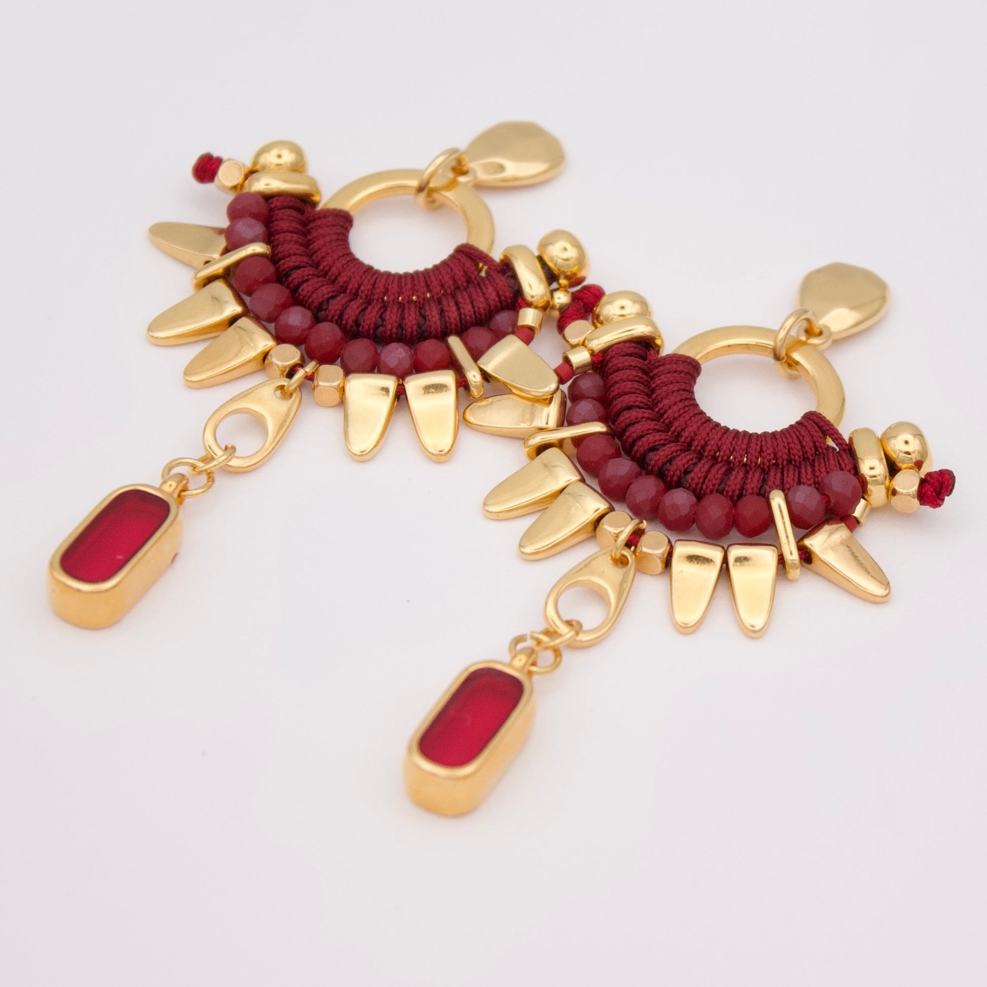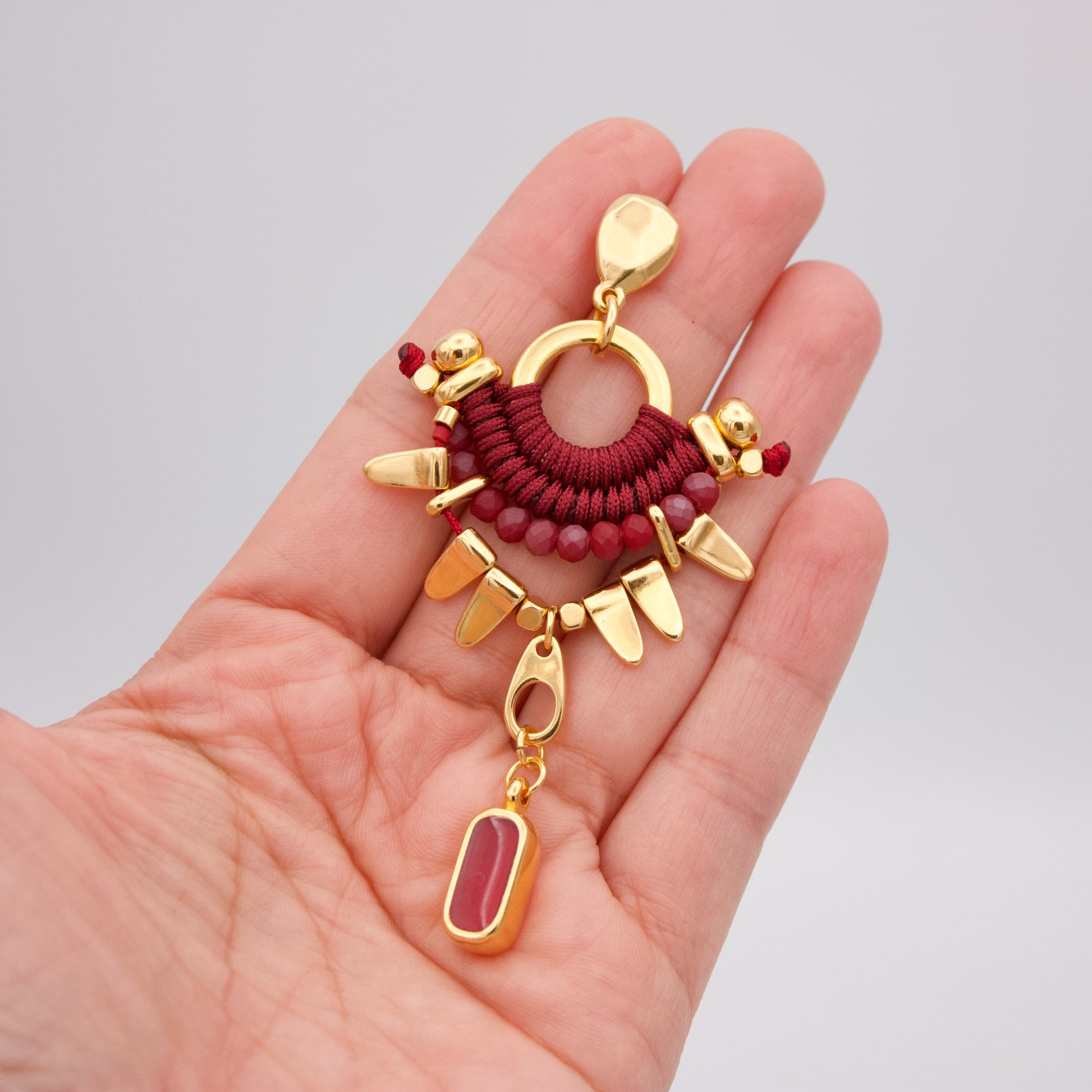 Handwoven in deep burgundy threads and adorned with golden charms and crystal beads, they radiate elegance and strength — a tribute to Frida Kahlo’s timeless spirit.